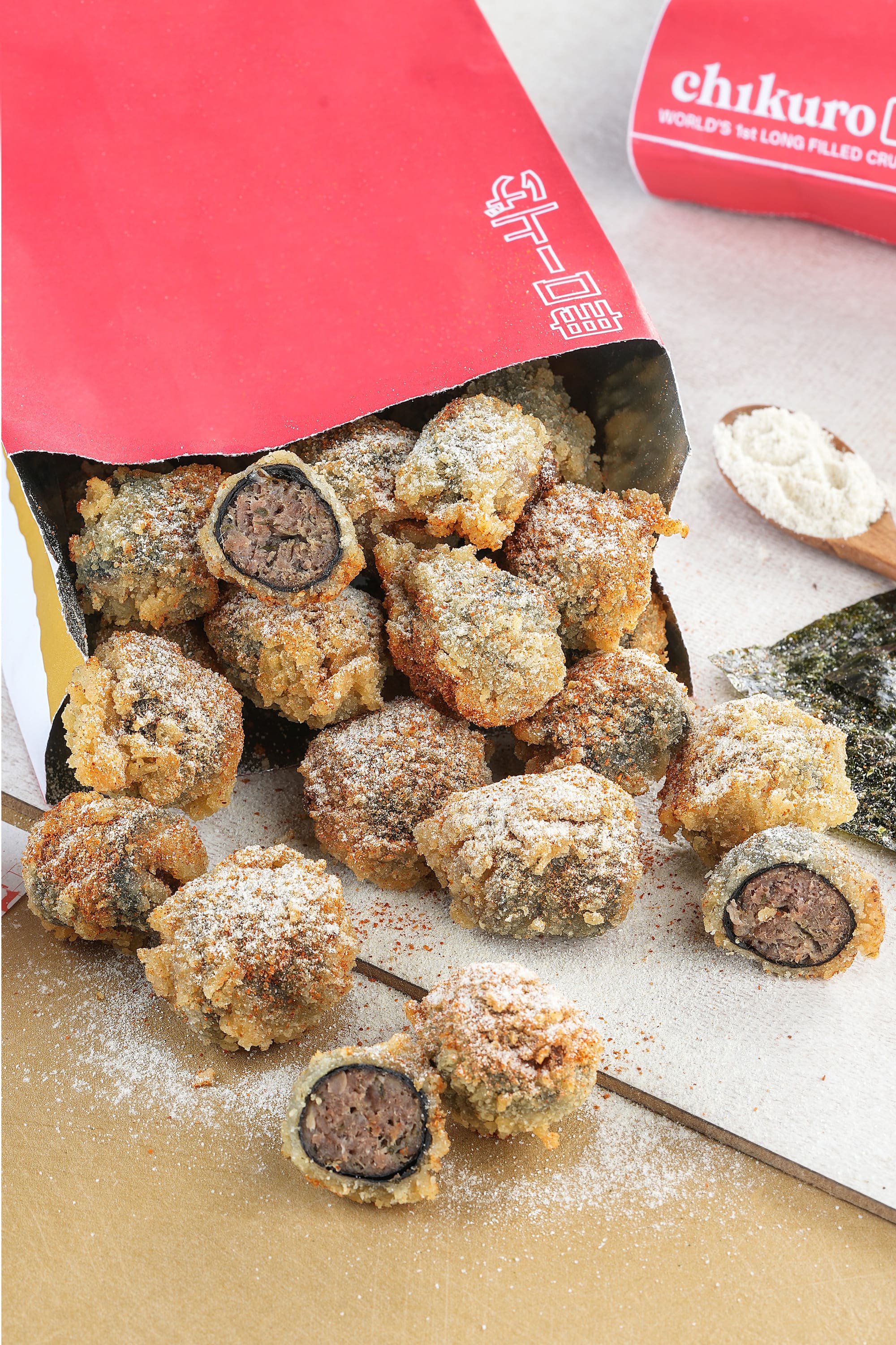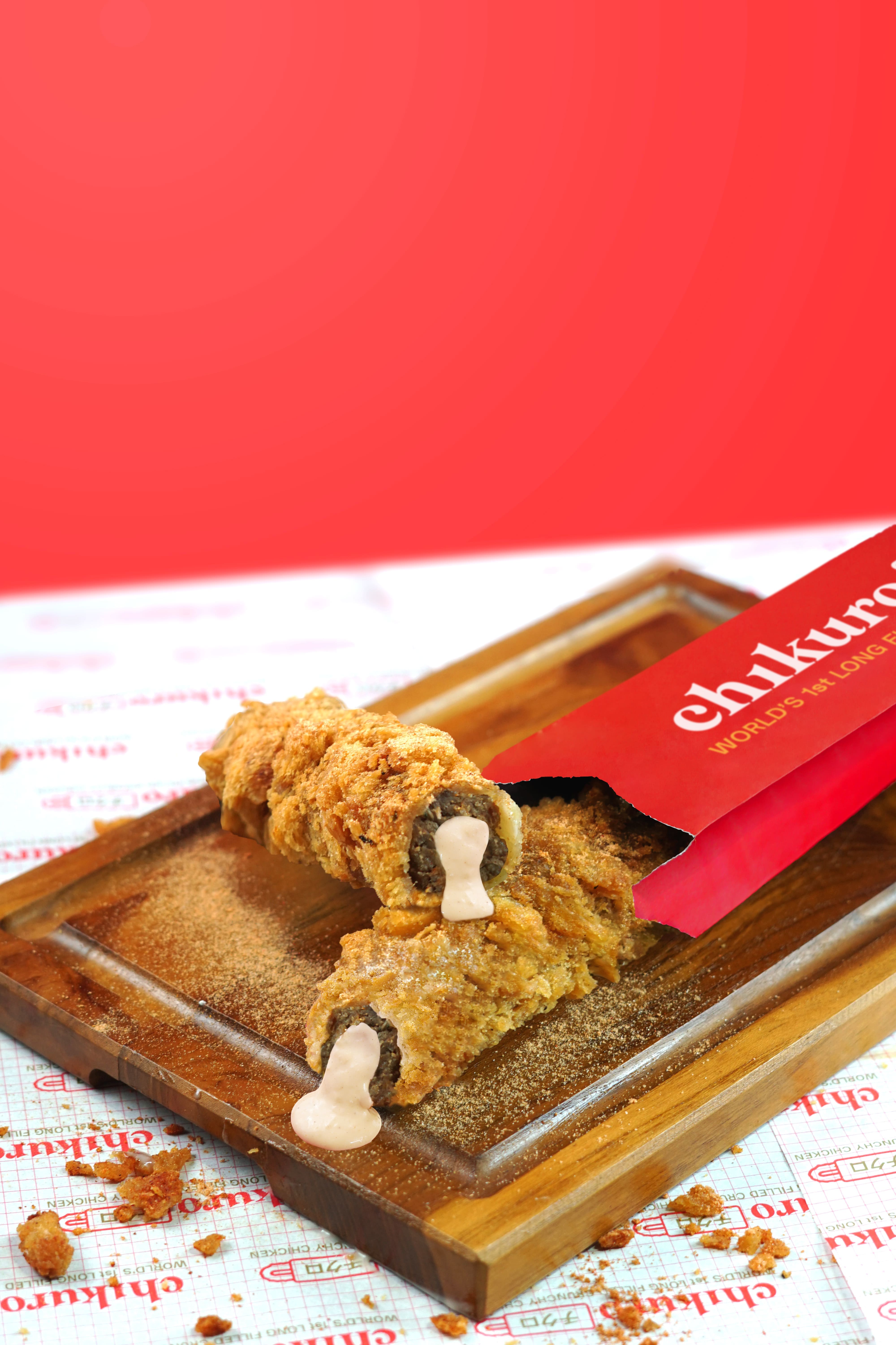 Snack terpanjang 1/4 meter Dibuat dengan bahan dasar ayam segar dari kualitas terbaik, dipadukan dengan tepung crunchy premium yang memberikan sensasi crunchy saat digigit, dengan varian isian filling creamy